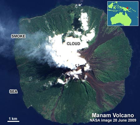 The spectacular view of Manam volcano, off the coast of Papua New Guinea, was captured by NASA’s Earth Observing – 1 satellite. The thin smoke over the northwest is smoke rising from the recent eruption. The thick white clouds formed by the water vapour released by the volcano have covered the peak of the mountain. According to the NASA website, Manami is one of the deadliest and most active volcanoes in Papua New Guinea, which frequently kills people. In the 1996 eruption, 13 villagers were killed, and the eruption in 2004 forced the entire population of the island to evacuate. With about 10km in diameter, Manam Island was created by the volcano itself, which rises up to 1807m.