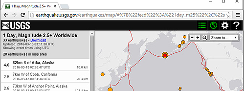 An interactive map of USGS real-time earthquake data